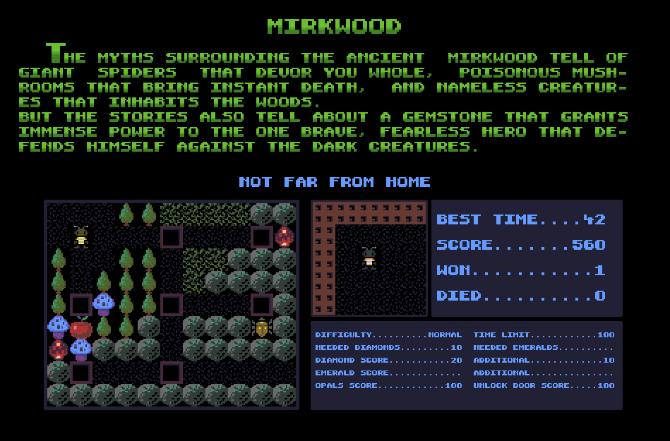 Nano Dash is Boulder Dash like action puzzler game in the making but with a lot of new elements and also some metroidvania features like tiny story-line, power-ups and a lot of secrets and hidden caves. The graphics and sound is close to the one from the original C-64 Boulder Dash from 1986. Also the game-play is similar to the original. The player controls Nano, who must dig through caves collecting gems and diamonds and reach the exit, while avoiding various types of dangerous creatures as well as falling rocks or get killed by an underground explosion.